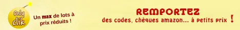 Onlyclik est un site de jeux gratuits assez simple qui peut vous faire gagner des cadeaux en échange de « clik ». Pour chaque cadeau mis en jeu, vous avez un compte à rebours. Pour gagner le cadeau, vous devez être le dernier joueur à participer avant la fin du chrono. Il faut savoir qu’à chaque fois qu’un joueur tente sa chance sur un lot, le jeu est prolongé de 30 secondes. Concernant les cadeaux mis en jeu, vous aurez accès principalement à des réductions utilisables en boutique. Vous pouvez trouver tous les détails de ce que contient la boutique plus bas. Il peut s’agir de codes en tous genre ou des chèques d’argent. Le principe est très simple et vous ne perdez rien à tenter votre chance.